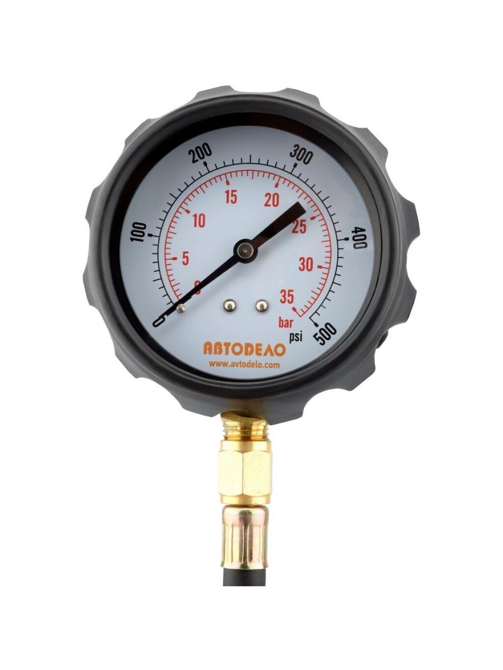 предназначен для измерения давления масла в двигателях внутреннего сгорания. Состоит из большого манометра с легкочитаемой шкалой, гибкого резинового шланга с резьбовым наконечником и набора резьбовых переходников. Благодаря широкой комплектации набор применим для измерения давления масла на различных автомобилях как отечественного, так и иностранного производства. Максимальное измеряемое давление - 35 кгс/см2.