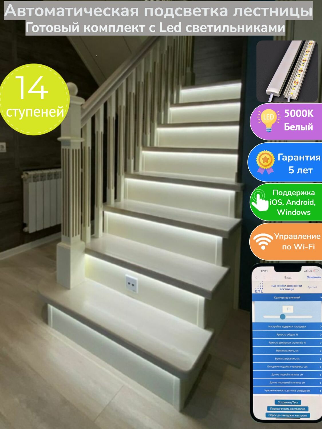 Комплект автоматической подсветки лестницы с датчиками движения ETL,14 ступеней , свет холодный 5000К.: сравнение цен, характеристики, фото, актуальное наличие и цены.