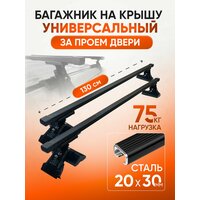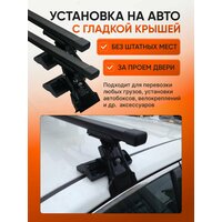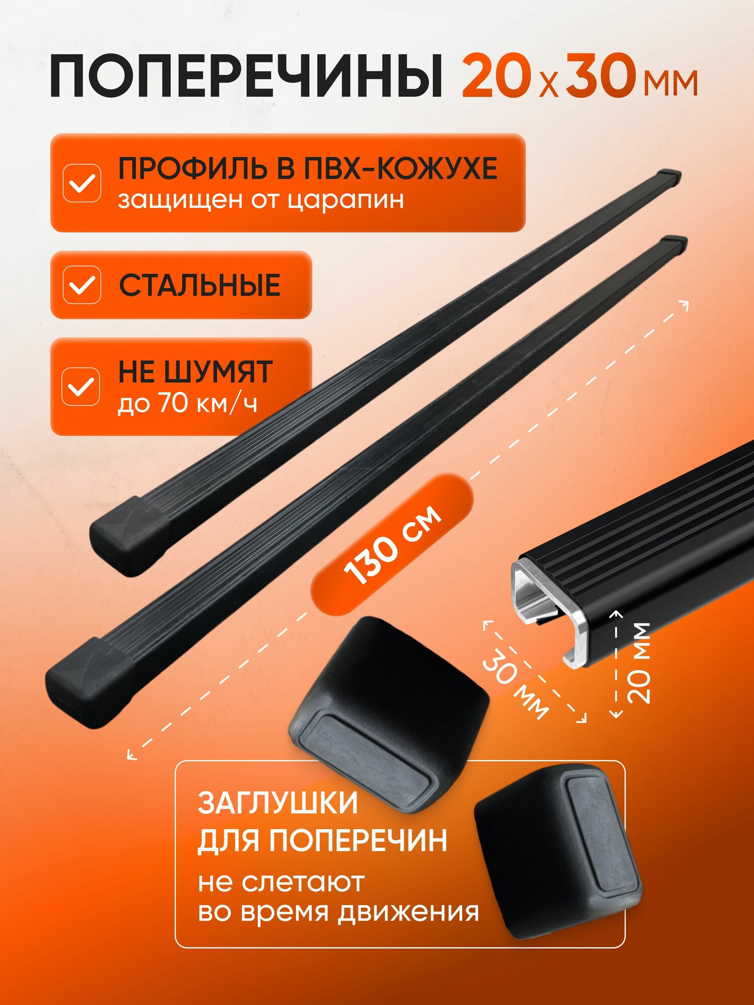Комплект багажника Inter D1-130 20х30 для автомобилей с гладкой крышей с креплением за проем двери, универсальный (4 упора черные + 2 перекладины 130 см, прямоугольного 20х30 сечения в черном цвете) - подходит на автомобили без штатных мест, с гладкой крышей.