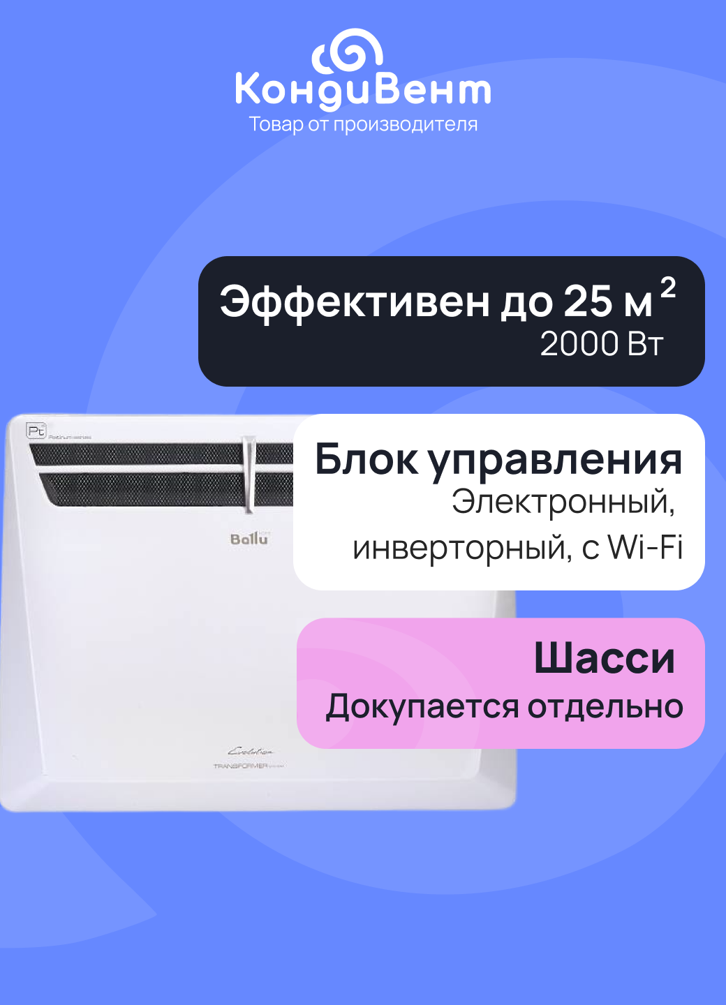 Представляем вам уникальную новинку – Конвектор баллу эволюшин трансформер электрический, блок управления с технологией digital INVERTER - BEC/EVU-2000-4I.