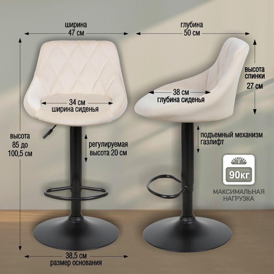 Компактные размеры: высота спинки — 27 см, глубина сиденья — 38 см, ширина — 34 см, делают эти стулья не только стильными, но и практичными. Они идеально впишутся в любое пространство, даже если оно ограничено. А их широкое основание в 38,5 см обеспечивает стабильность и безопасность — вы можете быть уверены в надёжности. Но это ещё не всё!