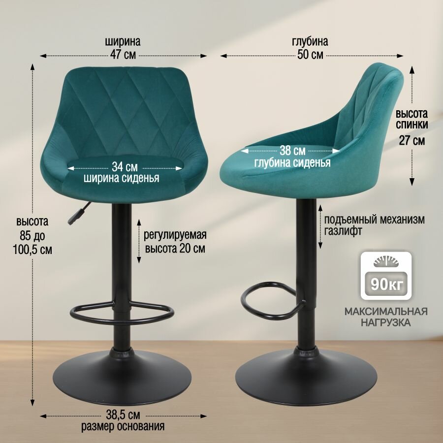 Комплект барных стульев 360 поворотные, с регулировкой по высоте, 2 шт