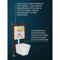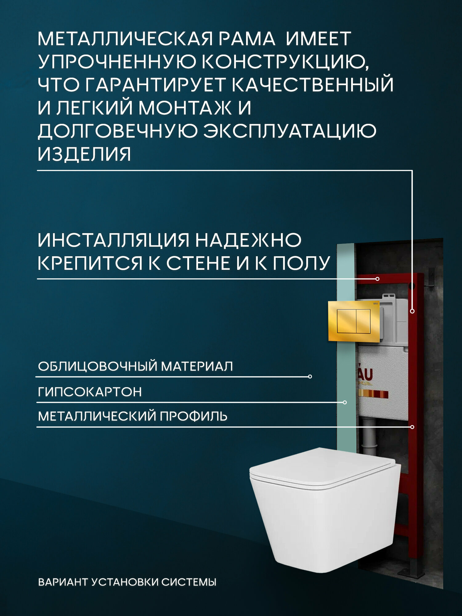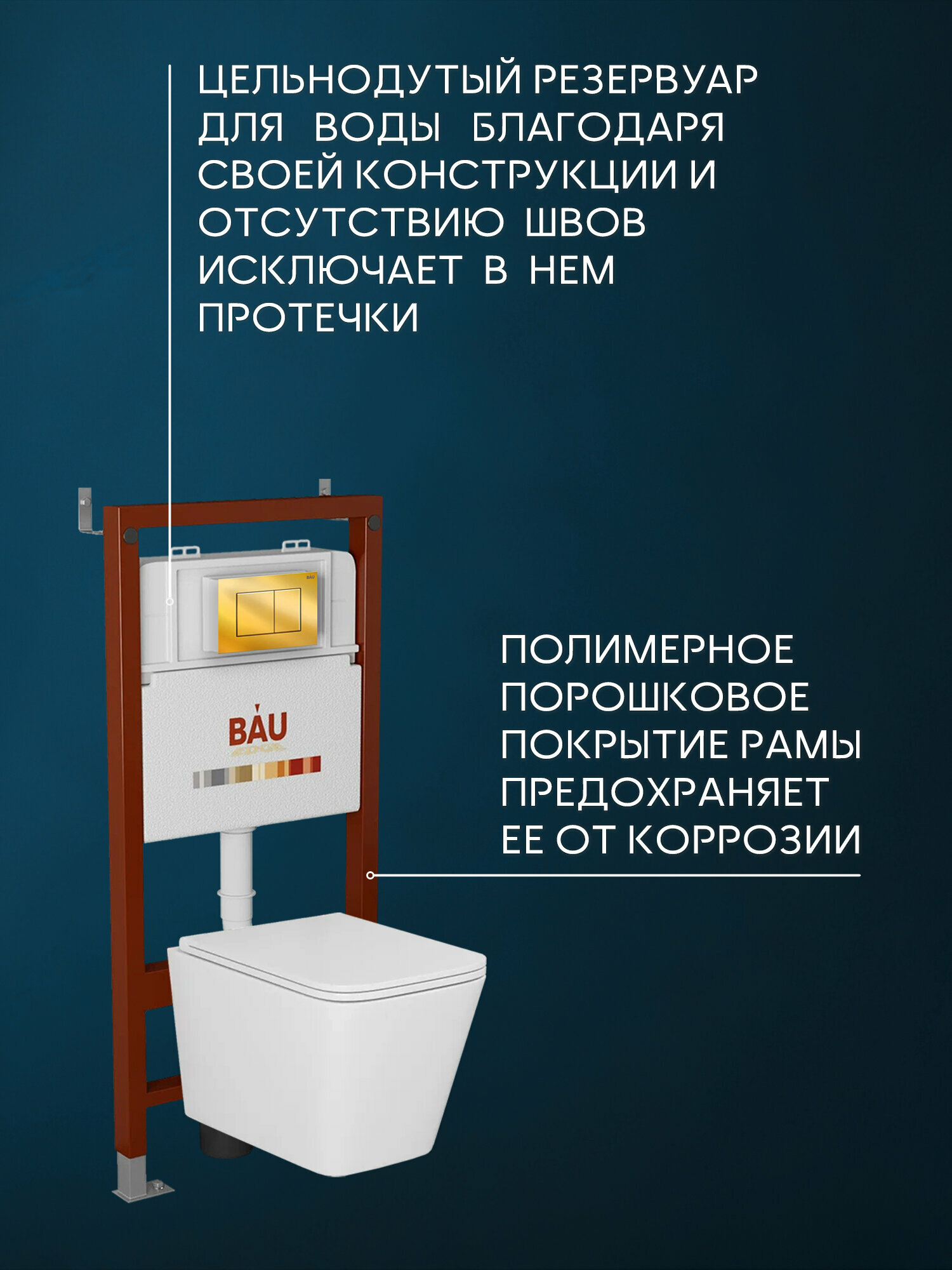 Купить Комплект BAU 6 в 1: инсталляция BAU PRO, унитаз подвесной безободковый вихревой Bau Stil Hurricane, быстросъемное тонкое сиденье дюропласт микролифт, клавиша BAU Stil, золото с доставкой по всей России.