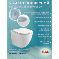 Комплект BAU 6 в 1: инсталляция BAU PRO, унитаз подвесной торнадо Bau Dream Hurricane-2, сиденье дюропласт микролифт, клавиша BAU Stil, золото Рамная инсталляция BAU PRO для подвесного унитаза. Компактная модель - ширина рамы 52,5 см. Рама защищена полимерным порошковым покрытием, блокирующим появление коррозии. Прочная металлическая рама инсталляционной системы позволяет выдерживать вес до 400 кг, что подтверждено техническими испытаниями. Крепится в капитальную стену и пол. Экономный слив предполагает две кнопки смыва – для полного и частичного слива бачка. Объем смывного бачка: 3 и 6 л. Подвод воды сверху. Диаметр слива: 10 см. Монтажная высота: 115,5 см. Гарантия на инсталляцию 10 лет. Подходит для всех унитазов брендов Bau, Grohe, Roca, Cersanit, OWL, Azario, Lavinia Boho, Teymi Комплектация: Цельнодутый резервуар для воды HDPE; ABS/POM/PP/PE; резина/NBR. Рама: NW. 8,05 кг/30*50*1,5 мм. /порошковая покраска Латунный клапан 1/2" Крепежные винты к стене Сливная труба Выходная труба 110мм Уплотнительные резиновые кольца Прокладка под плитку Монтажный набор со шпильками для подвесного унитаза Пластиковый короб для защиты при отделке Унитаз подвесной безободковый торнадо обратного потока Bau Dream 52х36 Hurricane-2, быстросъемное тонкое сиденье дюропласт микролифт. Совершенно новая система вихревая смыва: Торнадо обратного потока. Обеспечивает лучший по сравнению я обычным безободковым унитазом смыв, уровень шумности сри сливе снижен в 3 раза. Подходит для инсталляций Bauedge, Geberit, Cersanit, Berges, Oli, Grohe, Roca, Alcaplast, Delice, Tece, Grossman, Point и других. Форма: овальная. Безободковый. Материал сиденья: дюропласт. Режим слива воды: Вихревой, режим смыва - Торнадо. Сиденье с микролифтом: есть, уже установлено. Материал: санфарфор. Плюсы санфарфора: высокие прочность и плотность, натуральный белый цвет, минимальное влагопоглощение, гигиеничность, долговечность. Состав сырья для санитарного фарфора почти не отличается от фаянса. Это все те же белые глины, кварцевый песок и каолин. Кроме них присутствует еще и полевой шпат. Но вот пропорции, в которых добавляются компоненты, отличаются. Различается и технология производства материала. Формованные заготовки запекают при температуре 750-800˚С. При таком нагреве выжигаются все органические примеси, что дает фарфоровой массе однородный белоснежный цвет. На следующем этапе заготовки покрывают глазуровочной смесью. Однако ее состав тоже другой. Она не содержит пигментов, поскольку фарфор не надо окрашивать. Подготовленное таким образом изделие отправляется в печь, где обжигается в течение часа-полутора при температуре 1250˚С. После остывания материал приобретает высокую прочность и все заявленные эксплуатационные характеристики. Кнопка смыва BAU Stil для инсталляции, золото. Стильная механическая клавиша для инсталляции - небольшая деталь, которая всегда будет на виду. Клавиша изготовлена из пластика и имеет золотой цвет. Прямоугольные кнопки будут сочетаться со спокойным, гармоничным интерьером. Клавиша оснащена двумя режимами смыва: 3л и 6л. Клавиши: прямоугольные. Материал: пластик. Цвет: золото. Назначение: для унитазов.