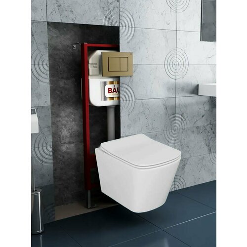 Комплект BAU 6 в 1: рамная инсталляция BAU NEO 45, унитаз подвесной безободковый Bau Stil, быстросъемное сиденье дюропласт микролифт, кнопка смыва BAU Stil, бронза. Рамная инсталляция BAU NEO 45 для подвесного унитаза. Компактная модель - ширина рамы 45 см. Рама защищена полимерным порошковым покрытием, блокирующим появление коррозии. Прочная металлическая рама инсталляционной системы позволяет выдерживать вес до 400 кг, что подтверждено техническими испытаниями. Крепится в капитальную стену и пол. Экономный слив предполагает две кнопки смыва – для полного и частичного слива бачка. Объем смывного бачка: 3 и 6 л. Подвод воды сверху. Диаметр слива: 10 см. Монтажная высота: 113 см. Гарантия на инсталляцию 15 лет. Подходит для всех унитазов брендов Bau, Grohe, Roca, Cersanit, OWL, Azario, Lavinia Boho, Teymi. Комплектация: Цельнодутый резервуар для воды HDPE; ABS/POM/PP/PE; резина/NBR. Латунный клапан 1/2". Крепежные винты к стене. Сливная труба. Выходная труба 110мм. Уплотнительные резиновые кольца. Монтажный набор со шпильками для подвесного унитаза. Пластиковый короб для защиты при отделке. Унитаз подвесной безободковый Bau Stil 51, быстросъемное сиденье дюропласт микролифт. Подходит для инсталляций Bau, Geberit, Grohe, Roca, Alcaplast, Delice, Tece, Grossman, Point и других. Форма: прямоугольная Безободковый Материал сиденья: дюропласт Режим слива воды: определяется системой инсталляции Сиденье с микролифтом: есть, уже установлено Материал: санфарфор Плюсы санфарфора: высокие прочность и плотность, натуральный белый цвет, минимальное влагопоглощение, гигиеничность, долговечность. Состав сырья для санитарного фарфора почти не отличается от фаянса. Это все те же белые глины, кварцевый песок и каолин. Кроме них присутствует еще и полевой шпат. Но вот пропорции, в которых добавляются компоненты, отличаются. Различается и технология производства материала. Формованные заготовки запекают при температуре 750-800˚С. При таком нагреве выжигаются все органические примеси, что дает фарфоровой массе однородный белоснежный цвет. На следующем этапе заготовки покрывают глазуровочной смесью. Однако ее состав тоже другой. Она не содержит пигментов, поскольку фарфор не надо окрашивать. Подготовленное таким образом изделие отправляется в печь, где обжигается в течение часа-полутора при температуре 1250˚С. После остывания материал приобретает высокую прочность и все заявленные эксплуатационные характеристики. Кнопка смыва BAU Stil для инсталляции, бронза. Стильная клавиша для инсталляции изготовлена из пластика и имеет бронзовый цвет. Прямоугольные кнопки будут сочетаться со спокойным, гармоничным интерьером. Клавиша оснащена двумя режимами смыва: 3л и 6л