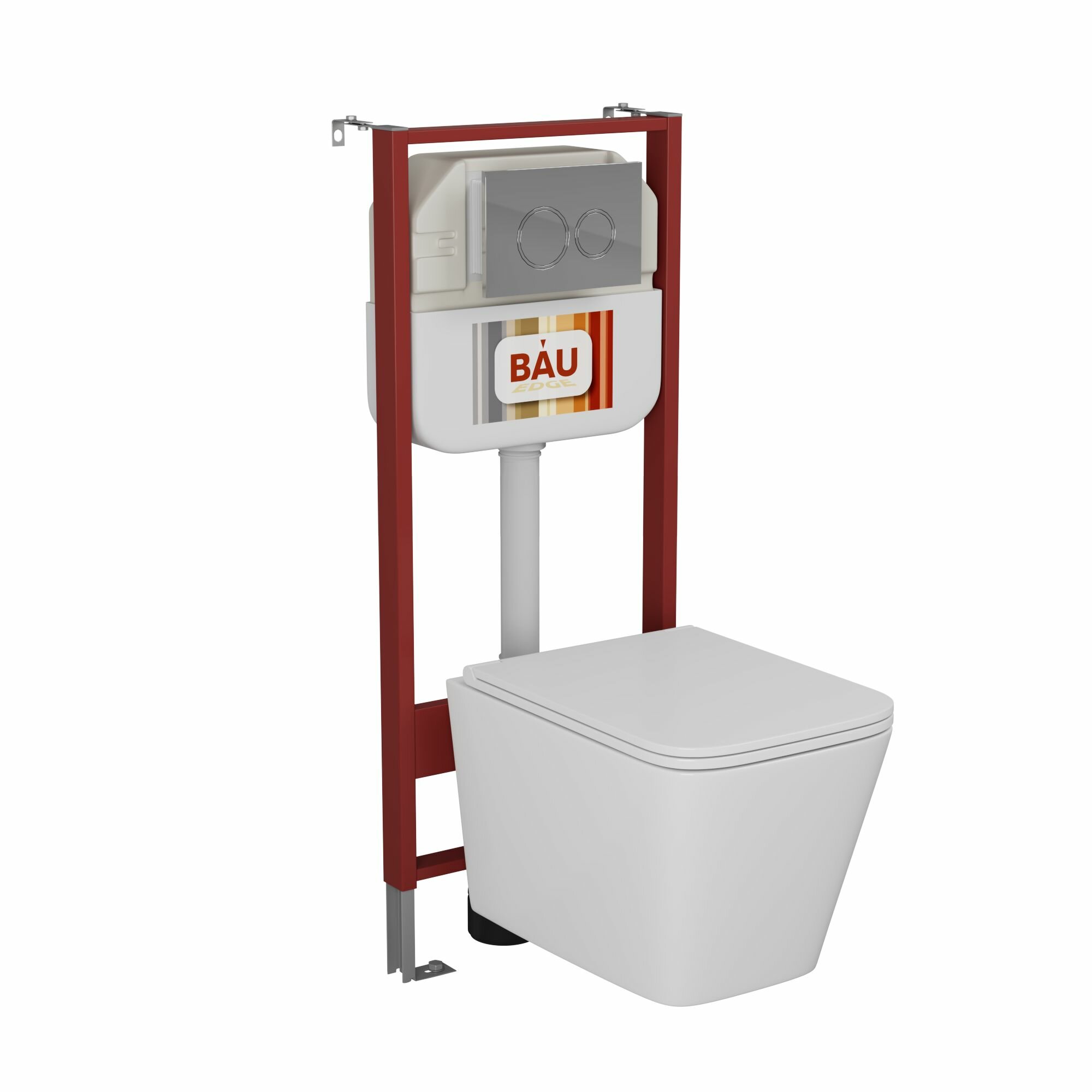 Купить Комплект BAU 6 в 1: рамная инсталляция BAU NEO 45, унитаз подвесной безободковый Bau Stil, быстросъемное сиденье дюропласт микролифт, круглая хромированная клавиша Aquanika с доставкой по всей России.