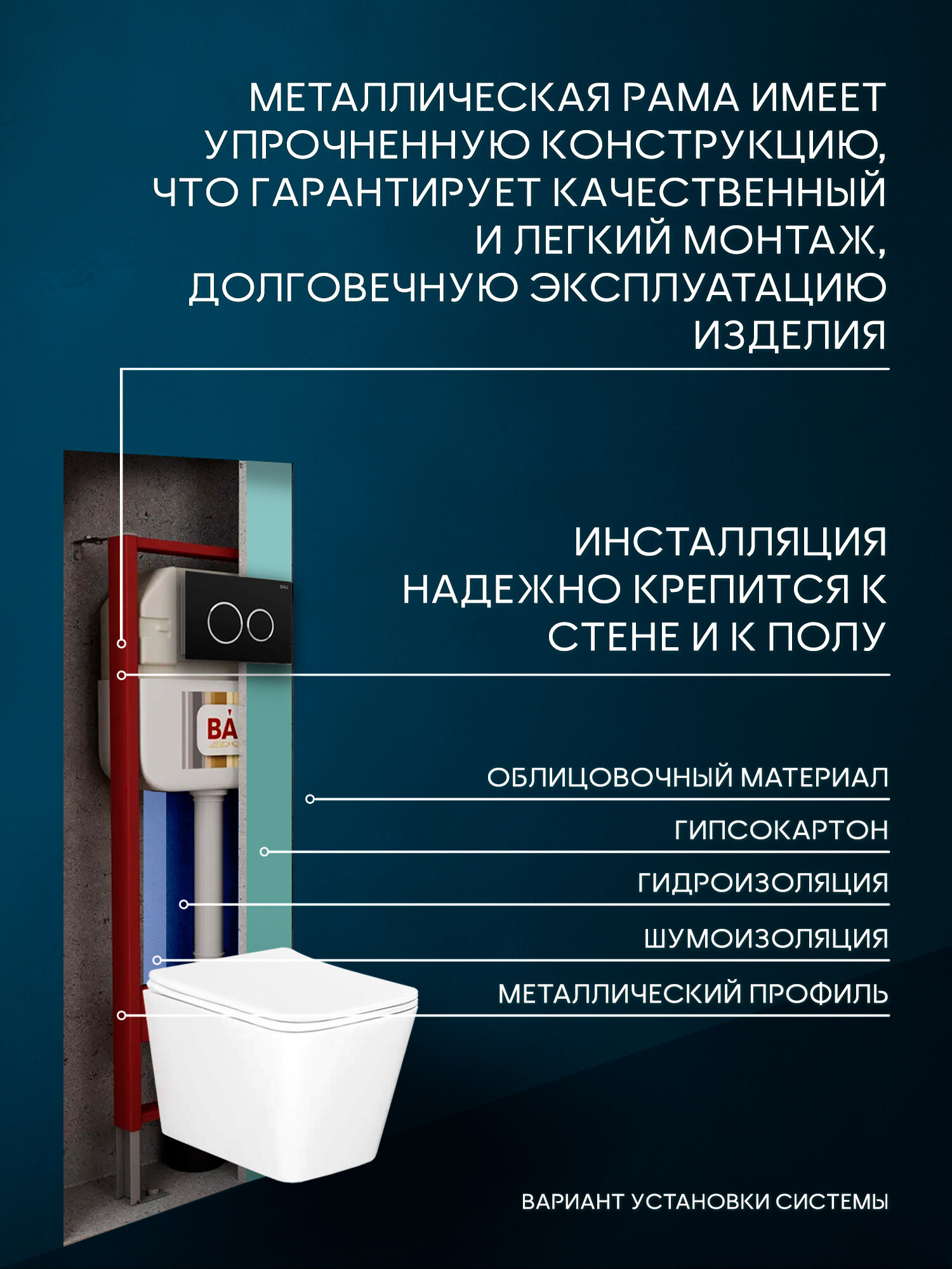 Купить Комплект BAU 6 в 1: рамная инсталляция BAU NEO 45, унитаз подвесной безободковый вихревой со скрытым сливом Bau Stil Hurricane-5, сиденье дюропласт микролифт, кнопка смыва BAU Dream , черная матовая с доставкой по всей России.