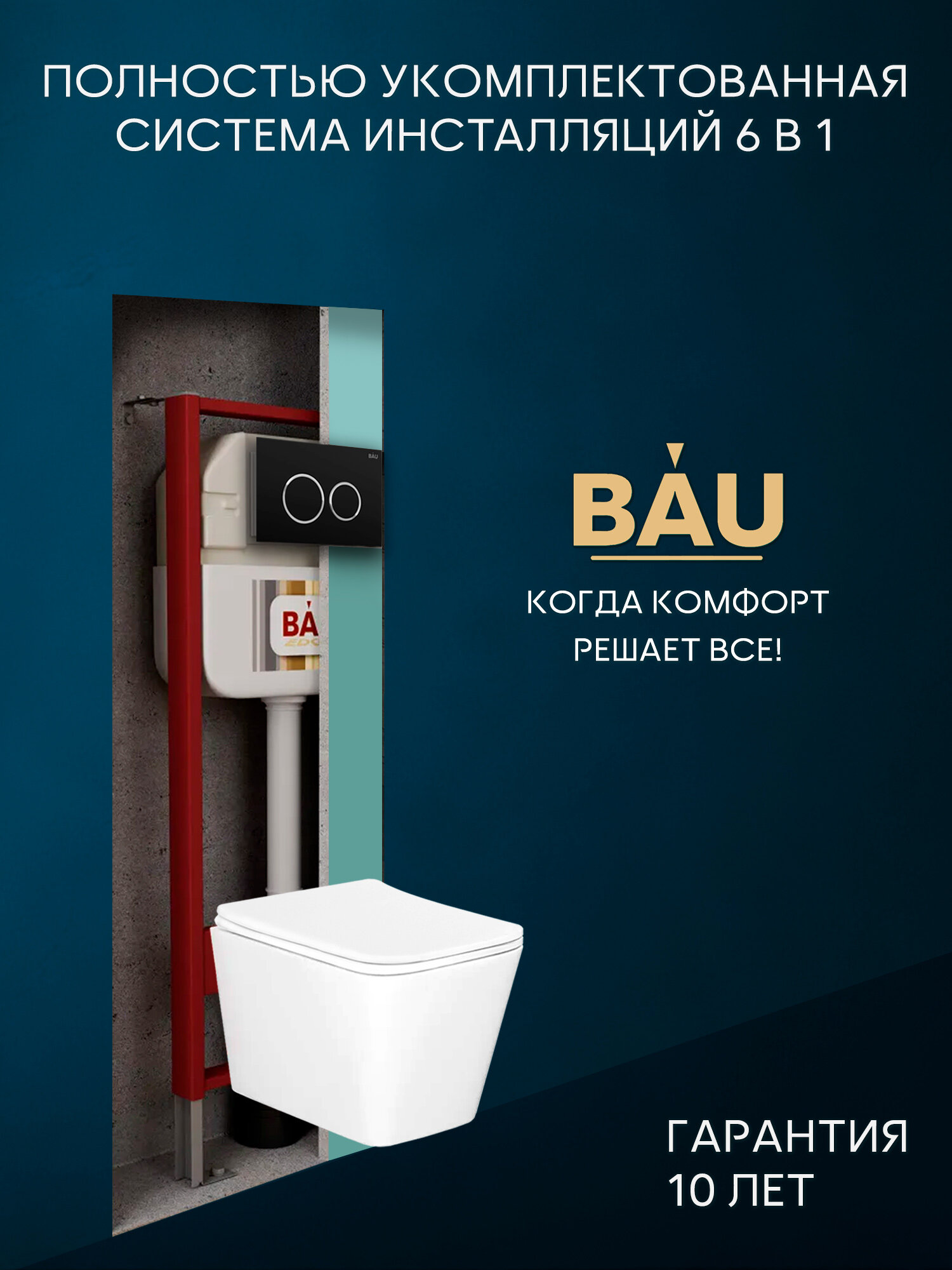 Комплект BAU 6 в 1: рамная инсталляция BAU NEO 45, унитаз подвесной безободковый вихревой со скрытым сливом Bau Stil Hurricane-5, сиденье дюропласт микролифт, кнопка смыва BAU Dream , черная матовая: сравнение цен, характеристики, фото, актуальное наличие и цены.