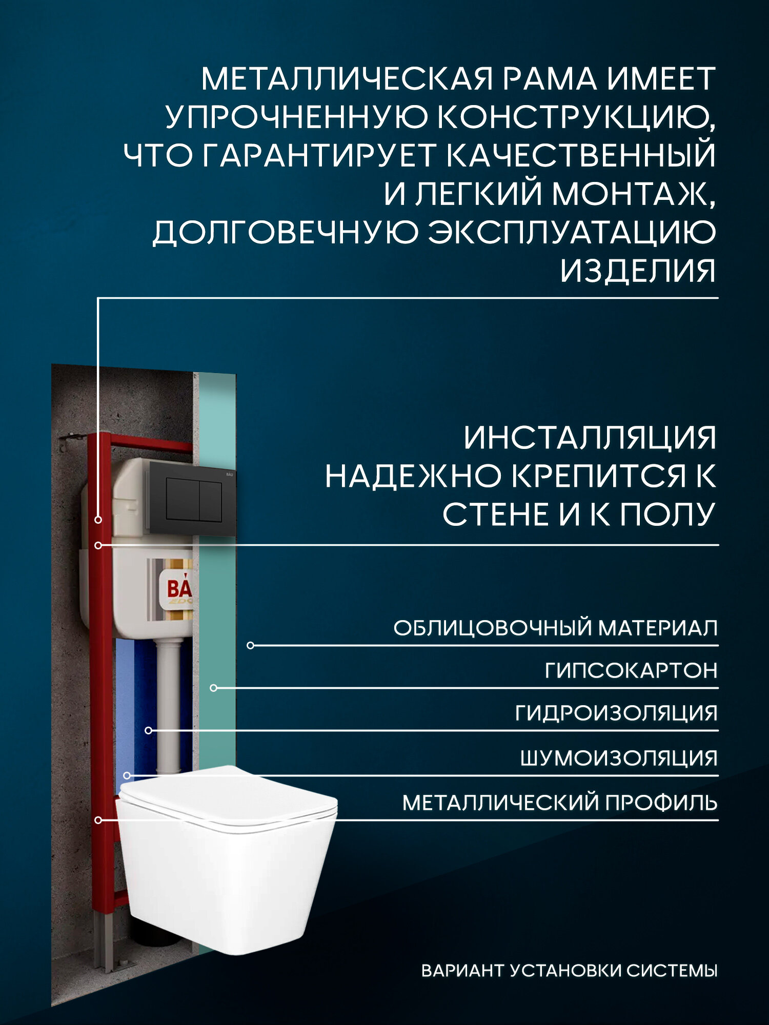Купить Комплект BAU 6 в 1: рамная инсталляция BAU NEO 45, унитаз подвесной безободковый вихревой со скрытым сливом Bau Stil Hurricane-5, сиденье дюропласт микролифт, кнопка смыва BAU Stil , черная матовая с доставкой по всей России.