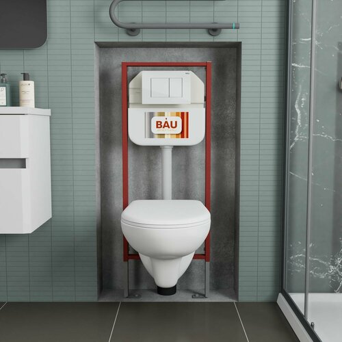Комплект BAU 6 в 1: рамная инсталляция, унитаз подвесной безободковый Bau Novo, быстросъемное сиденье микролифт, кнопка смыва BAU Stil , белый глянец