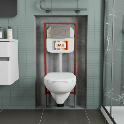 Купить Комплект BAU 6 в 1: рамная инсталляция, унитаз подвесной безободковый Bau Novo, быстросъемное сиденье микролифт, круглая хромированная клавиша Aquanika с доставкой по всей России.
