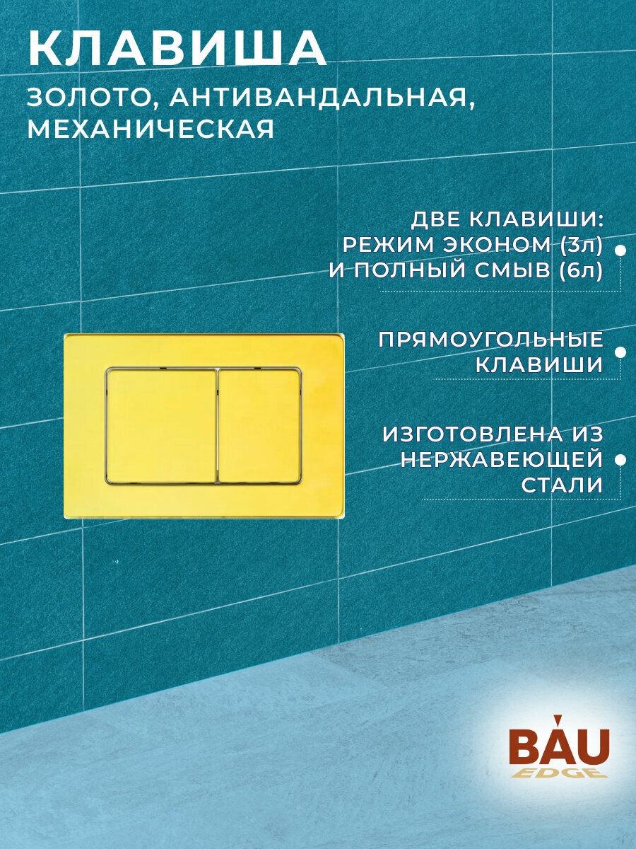 Купить Комплект BAU 6 в 1: усиленная инсталляция BAU IDEAL, унитаз подвесной безободковый вихревой Bau Dream Hurricane3, сиденье дюропласт микролифт, клавиша BAU Light антивандальная, нерж. сталь золото с доставкой по всей России.
