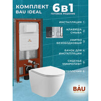Комплект BAU 6 в 1: усиленная инсталляция BAU IDEAL, унитаз подвесной безободковый вихревой Bau Dream Hurricane3, сиденье дюропласт микролифт, клавиша BAU Strike, хром: сравнение цен, характеристики, фото, актуальное наличие и цены.