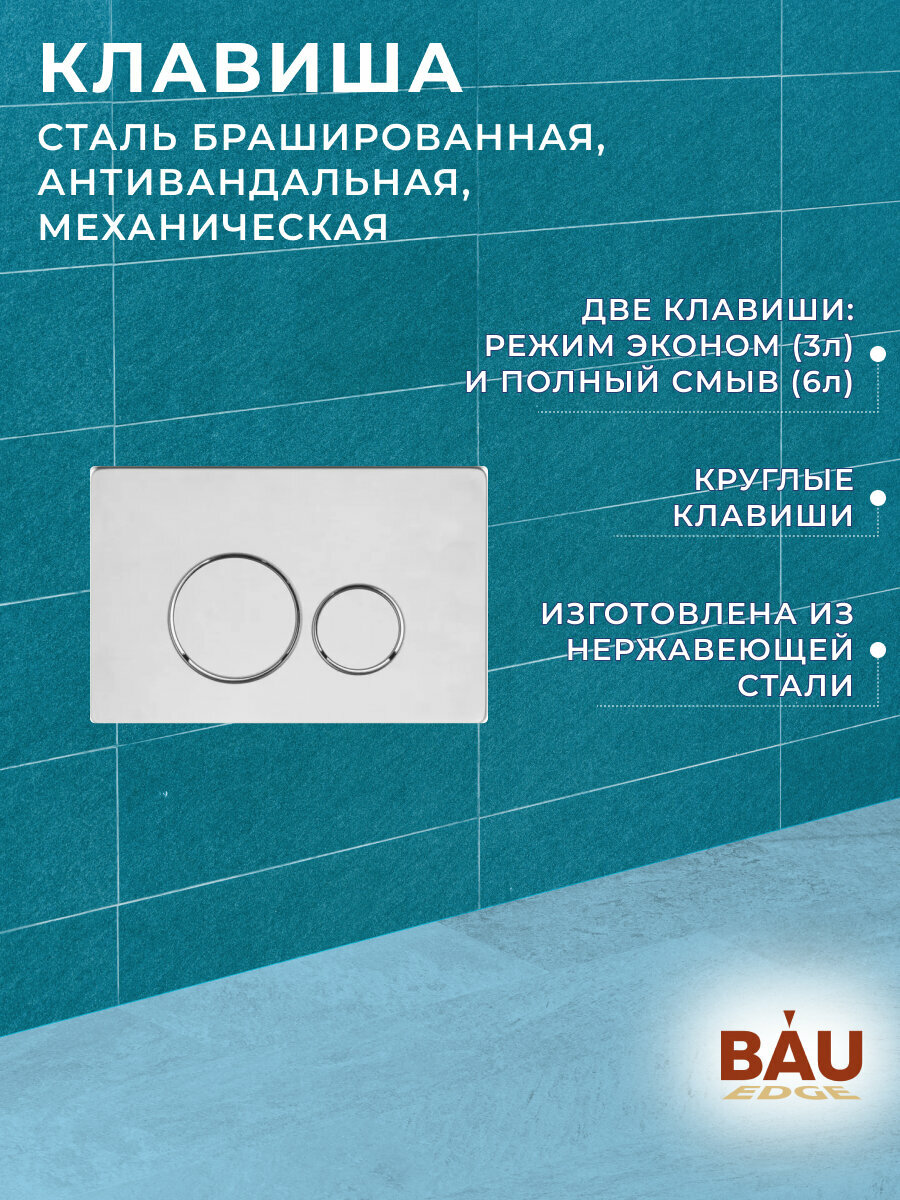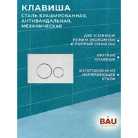 Купить Комплект BAU 6 в 1: усиленная инсталляция BAU IDEAL, унитаз подвесной безободковый вихревой Bau Dream Hurricane3, сиденье микролифт, клавиша BAU Wheel антивандальная, нерж. сталь брашированная с доставкой по всей России.