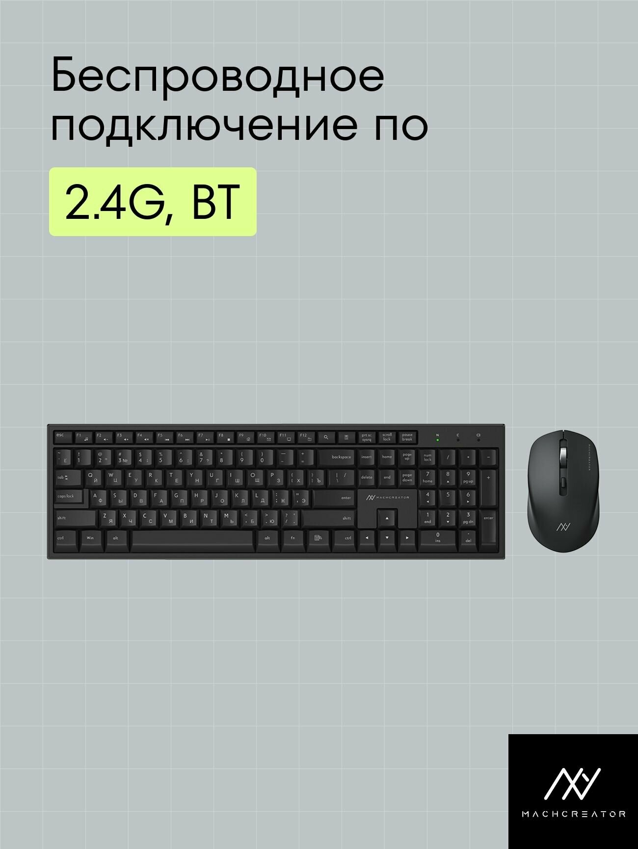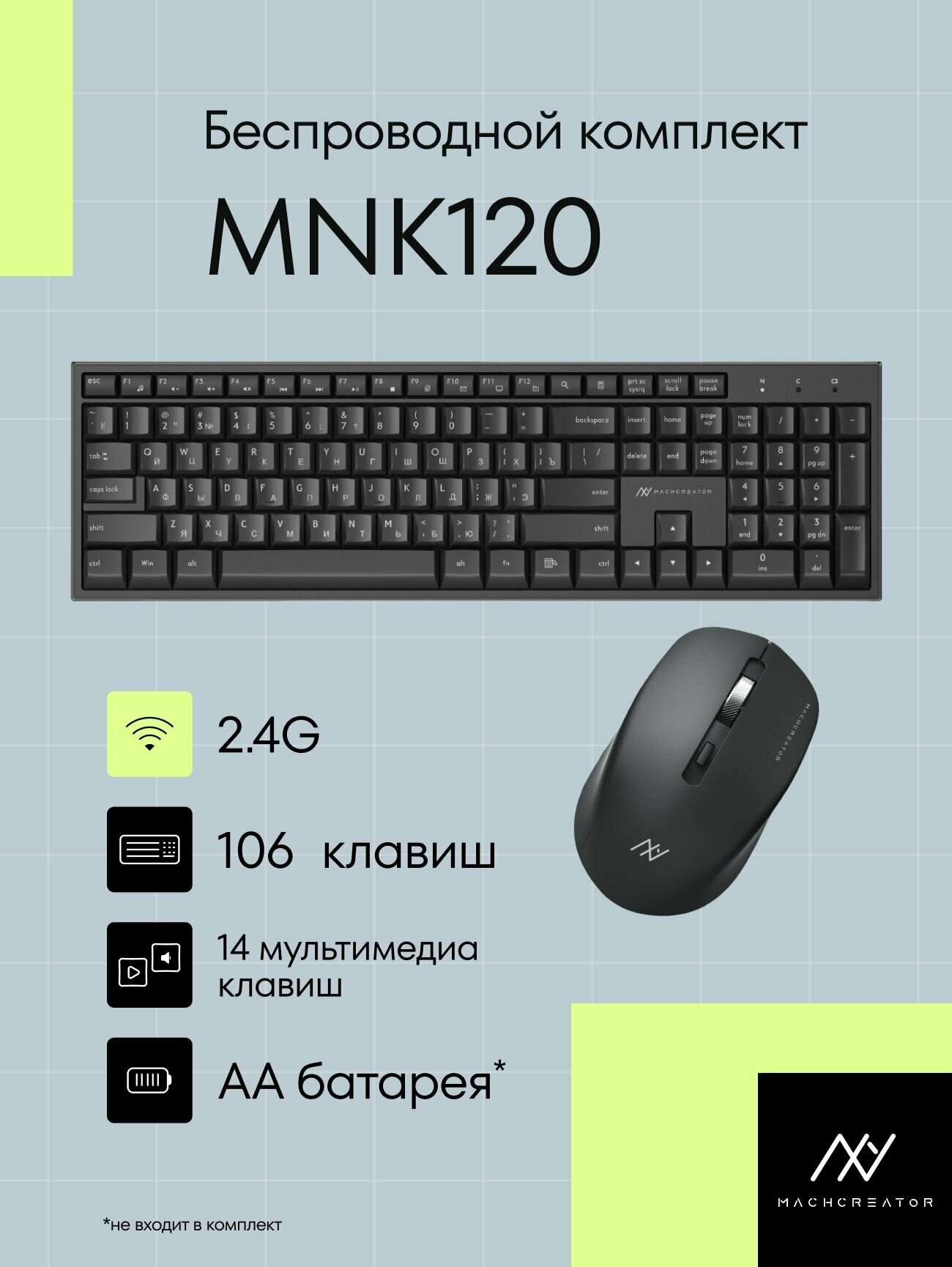 Купить Комплект беспроводной мышь + клавиатура Machcreator MNK120, 2.4GHz, тихий клик, АА батарея (не входит в комплект), черный с доставкой по всей России.