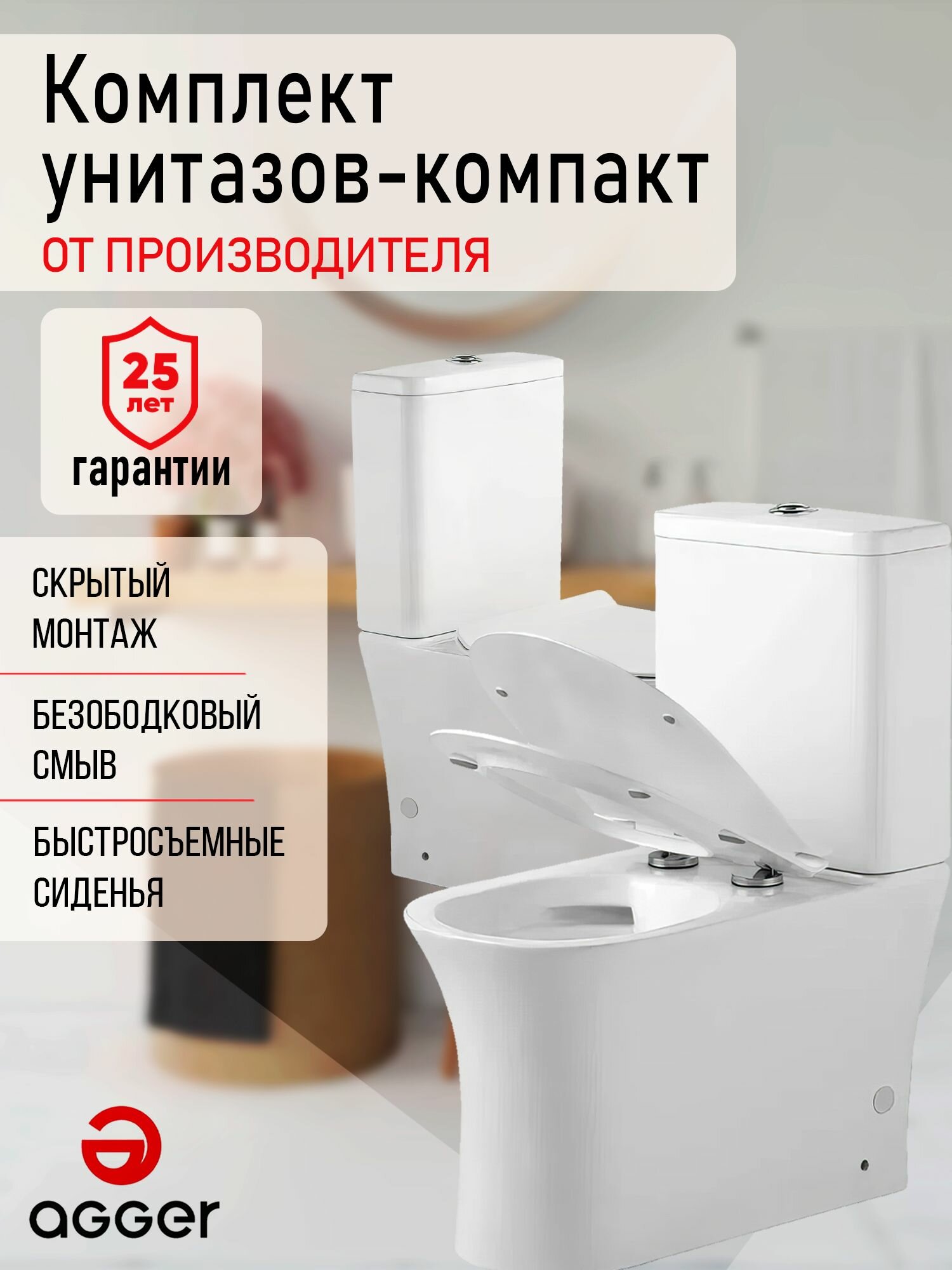 Купить Комплект безободковых компакт-унитазов для двух санузлов Agger AT01000 с доставкой по всей России.