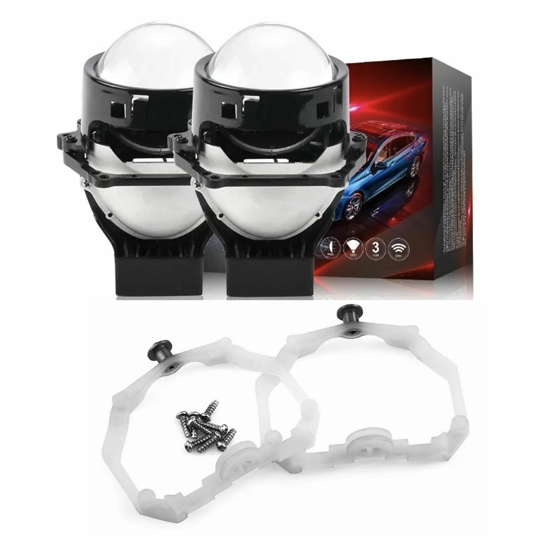 Два модуля, две переходных рамки, это все, что потребуется Вам для замены штатных би-ксеноновых, либо галогеновых линз.