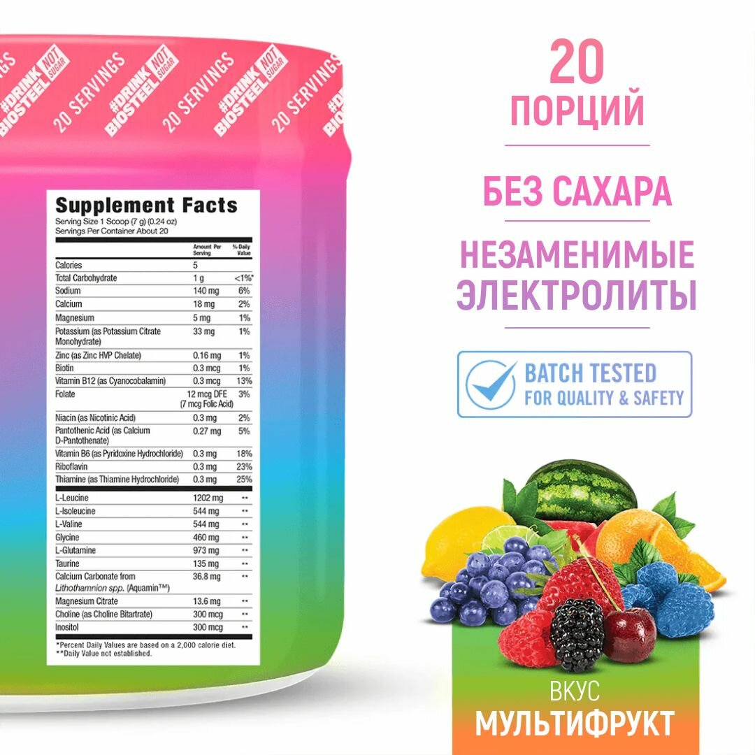 BioSteel Sports Hydration Mix — это уникальное решение для спортсменов, не употребляющих допинг и ищущих питательные добавки высочайшего качества. Каждая партия продукции BioSteel получает сертификат NSF Certified For Sport, а также независимо проверяется лабораторией, одобренной вада, что гарантирует отсутствие каких-либо запрещенных веществ даже в незначительных количествах. Аналогичные изотонические энергетические продукты и спортпит других производителей, состоят из рафинированных сахаров, искусственных красителей и ароматизаторов, содержат небольшое количество электролитов и аминокислот низкого качества. В составе BioSteel Sports HPS Mix аминокислоты и электролиты только высочайшего качества в точности в тех количествах и соотношениях, которые обоснованы научными исследованиями и длительным тестированием, отсутствует сахар. Отсутствие сахара позволяет использовать энергетик даже людьми страдающими диабетом 1-го и 2-го типов, для увеличения энергии, концентрации и снижения мышечного утомления, проводимое тестирование у людей с диабетом показало отсутствие колебаний уровня сахара в крови. Добавка разрабатывалась для профессиональных спортсменов мирового уровня, женщин и мужчин, поэтому в отношении ингредиентов и положительного воздействия на здоровье компромиссные решения не рассматривались. BioSteel Sports Hydration Mix самый безопасный и полезный для здоровья продукт на рынке, позволяющий добиваться оптимальных результатов в области спорта, здоровья и хорошей физической формы. Рекомендации по употреблению: Разбавьте 1-2 мерные ложки добавки спортпитания в 250 — 500 мл воды. От количества воды зависит вкус и консистенция напитка. Обычное применение: употреблять в любое время дня для поддержания насыщенности организма водой. До и во время занятий: начинать употреблять предтренировочный порошковый комплекс BioSteel за тридцать минут до тренировки, бега или игры и пить понемногу в течение всего времени занятия. Товар не является лекарственным средством и не предназначен для диагностики, лечения и профилактики заболеваний. Перед началом приема любого продукта обязательно проконсультируйтесь у специалиста. Информация о характеристиках, составе и внешнем виде носит справочный характер и основывается на последних доступных к моменту публикации сведениях.