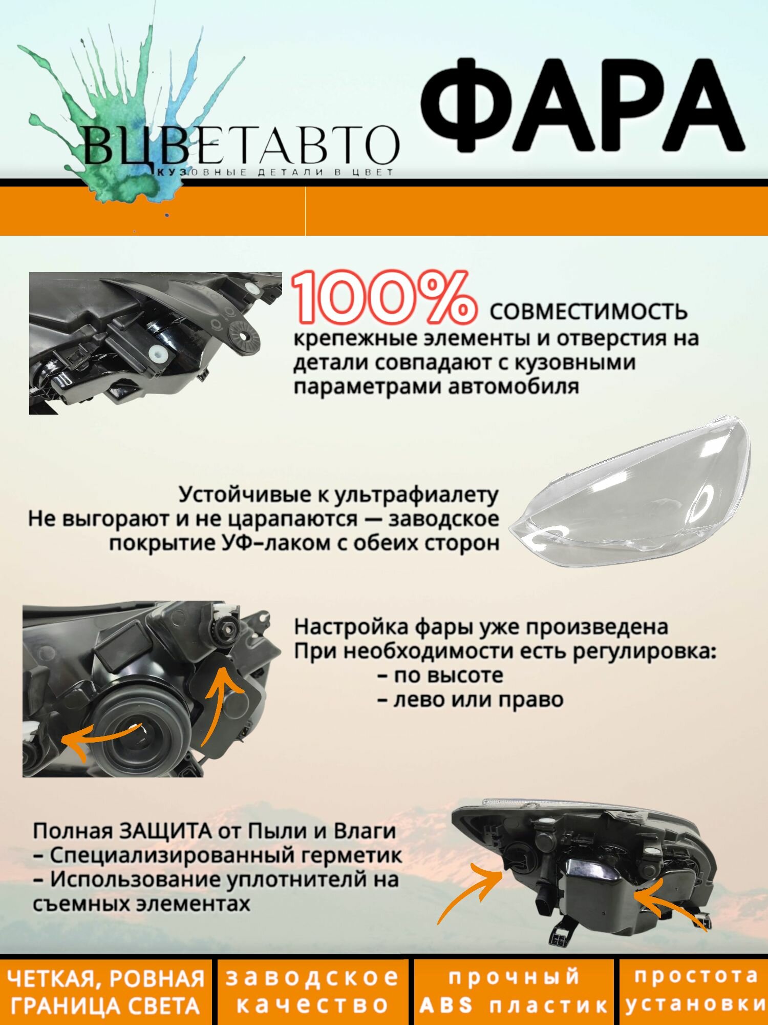 Купить Комплект блок ФАР передних Hyundai Solaris 1 Хендай Солярис (2014-2017) под автокоректор с доставкой по всей России.