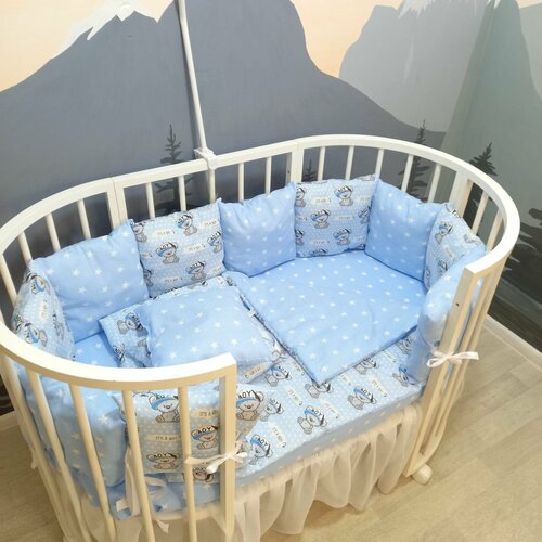 Купить Комплект бортиков в кроватку из 15 предметов Mamdis для новорожденных и малышей голубой с доставкой по всей России.