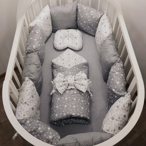 Купить Комплект бортиков в кроватку из 16 предметов Mamdis для новорожденных и малышей серый с доставкой по всей России.