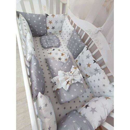 Купить Комплект бортиков в кроватку из 16 предметов Mamdis для новорожденных и малышей со звездами с доставкой по всей России.