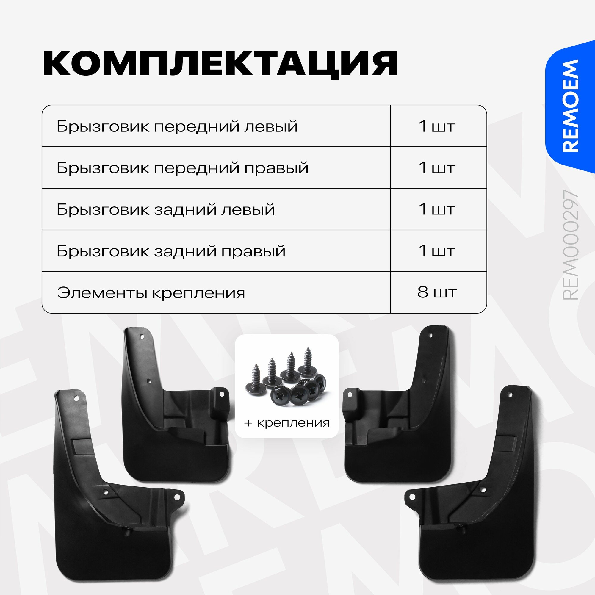 Купить Брызговики для Changan Hunter Plus с расширителем арок (2023-2025), передние и задние комплект из 4 шт Remoem / Чанган Хантер Плюс с доставкой по всей России.