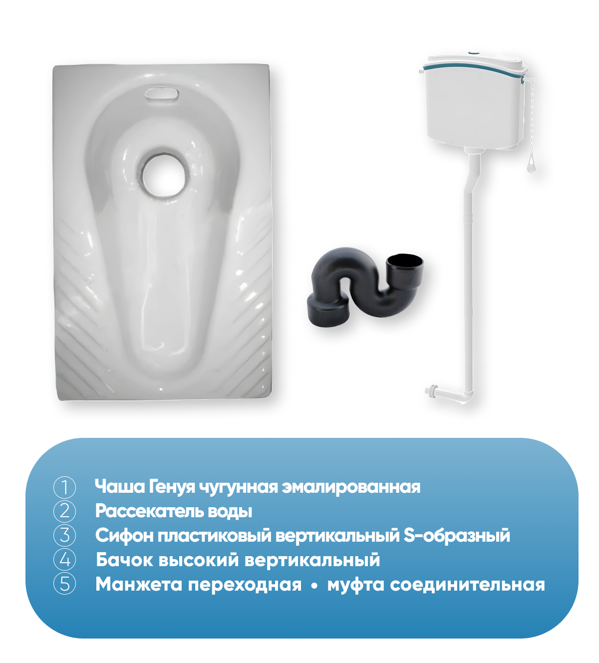 Купить Комплект Чаша Генуя чугунная с высоким бачком, сифоном и рассекателем с доставкой по всей России. Комплект Чаша Генуя чугунная с высоким бачком, сифоном и рассекателем: сравнение цен, характеристики, фото, актуальное наличие и цены.