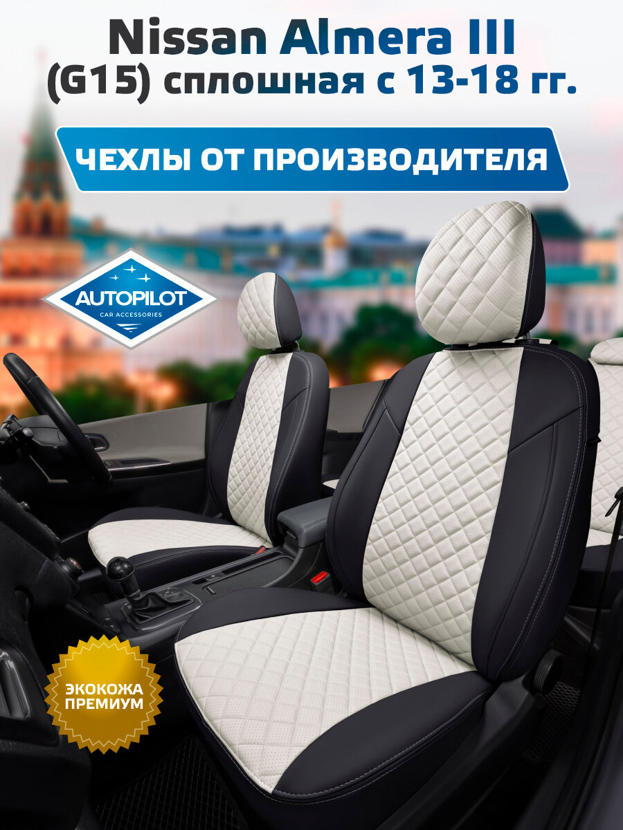 Комплект авточехлов «Автопилот» Nissan Almera III (G15) сплошная с 13-18 гг. Экокожа ромб (Черный + Белый): сравнение цен, характеристики, фото, актуальное наличие и цены.