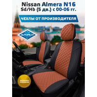Комплект авточехлов «Автопилот» Nissan Almera N16 Седан/Хэтчбек (5 дв.) с 00-06г. Экокожа ромб (Черный + Коричневый): сравнение цен, характеристики, фото, актуальное наличие и цены.