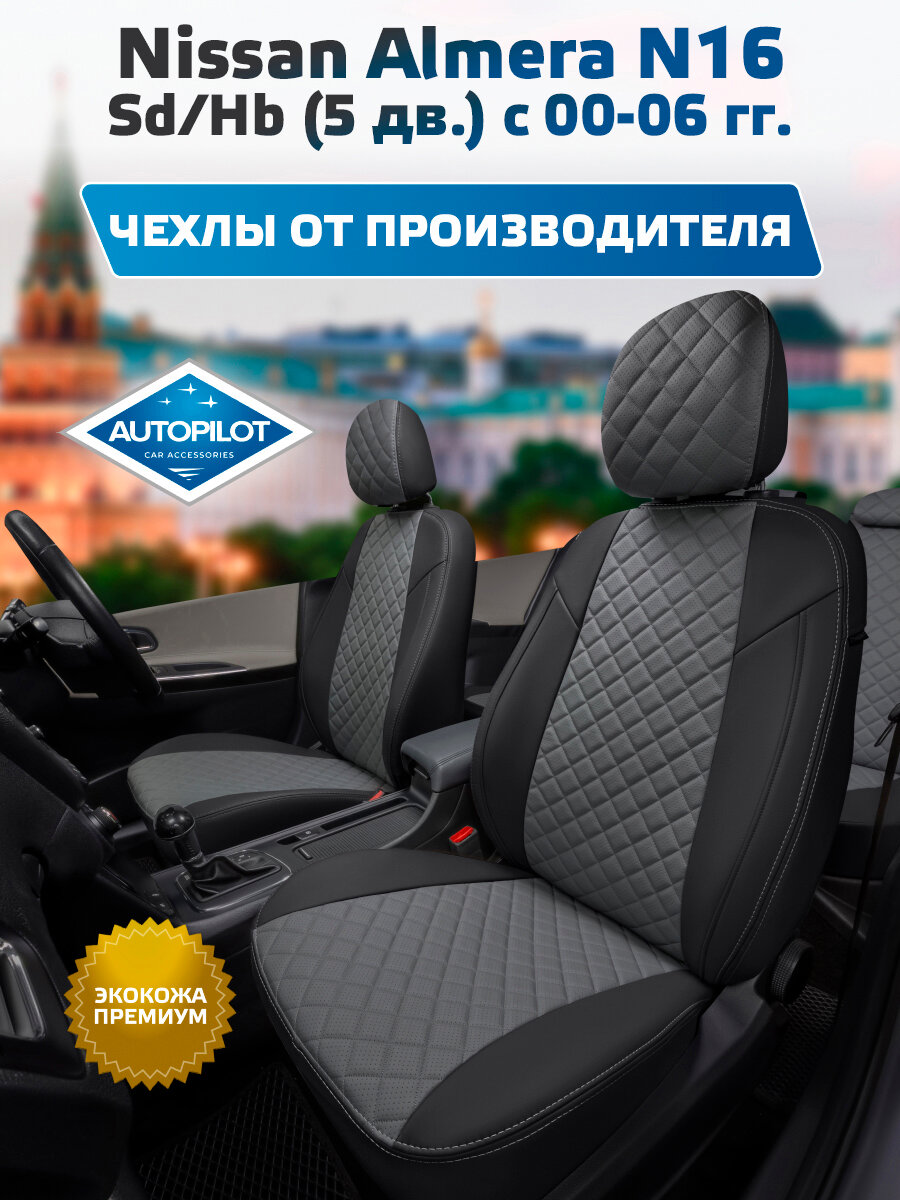 Комплект авточехлов «Автопилот» Nissan Almera N16 Седан/Хэтчбек (5 дв.) с 00-06г. Экокожа ромб (Черный + Серый): сравнение цен, характеристики, фото, актуальное наличие и цены.