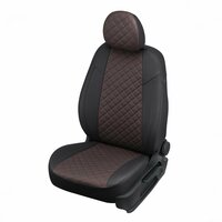 Комплект чехлов Автопилот Ромб Renault Logan II 40/60 / Sandero II (без подушек безопасности) c 14г. Черный + Шоколад. Чехлы изготовлены из матовой экокожи Аригон с полиуретановым покрытием на хлопковой основе. Прочный, легкий, экологически чистый материал не вызывающий аллергической реакции. Тыльные и боковые части чехлов сделаны из гладкой экокожи, а центральная часть из перфорированной экокожи, алькантары или велюра. Более 20 вариантов расцветок. Чехлы изготовлены со всеми технологическими отверстиями и не нарушают заводскую функциональность салона.
