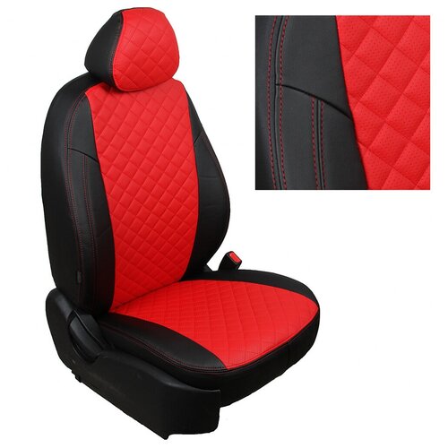Комплект чехлов Автопилот Ромб Toyota Rav-4 (XA50) c 18г. Черный + Красный. Чехлы изготовлены из матовой экокожи Аригон с полиуретановым покрытием на хлопковой основе. Прочный, легкий, экологически чистый материал не вызывающий аллергической реакции. Тыльные и боковые части чехлов сделаны из гладкой экокожи, а центральная часть из перфорированной экокожи, алькантары или велюра. Более 20 вариантов расцветок. Чехлы изготовлены со всеми технологическими отверстиями и не нарушают заводскую функциональность салона.