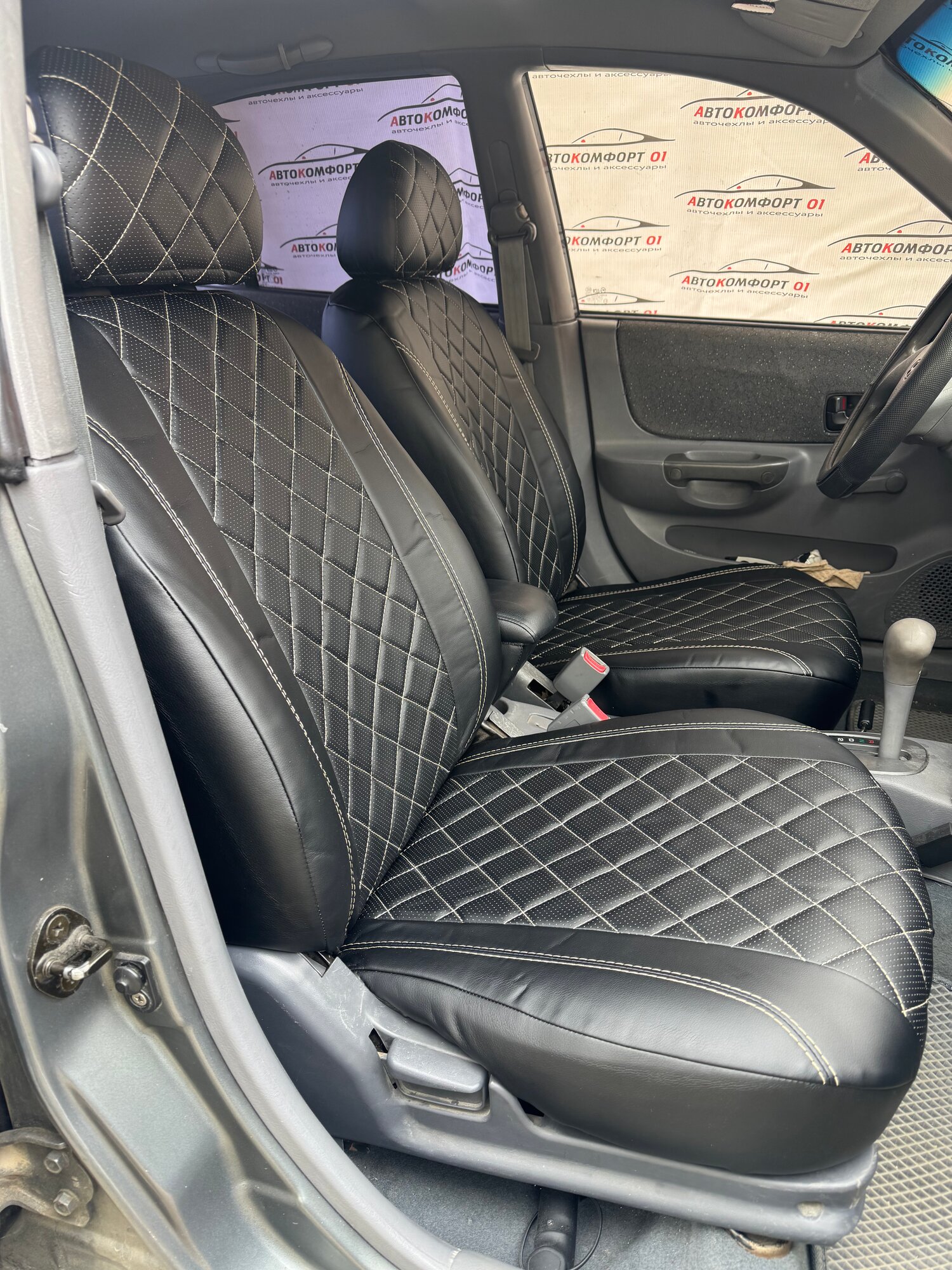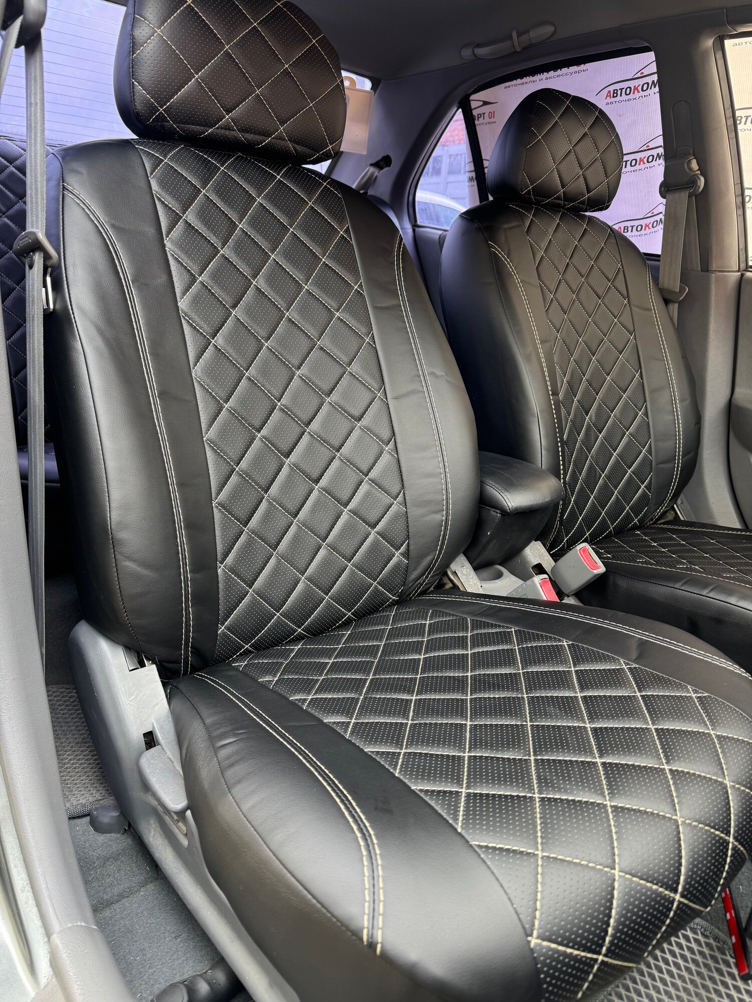 Комплект чехлов для Hyundai Accent с 99-11г. Экокожа, ромб, черный, бежевая строчка.: сравнение цен, характеристики, фото, актуальное наличие и цены.