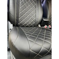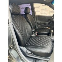 Купить Комплект чехлов для Hyundai Accent с 99-11г. Экокожа, ромб, черный, бежевая строчка. с доставкой по всей России.
