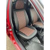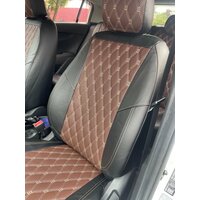 Купить Комплект чехлов для Hyundai Accent с 99-11г. Экокожа, ромб, черный + коричневый с доставкой по всей России.