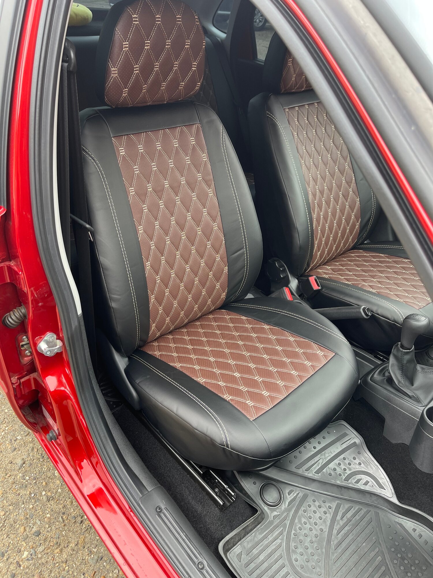 Комплект чехлов для Hyundai Accent с 99-11г. Экокожа, ромб, черный + коричневый: сравнение цен, характеристики, фото, актуальное наличие и цены.