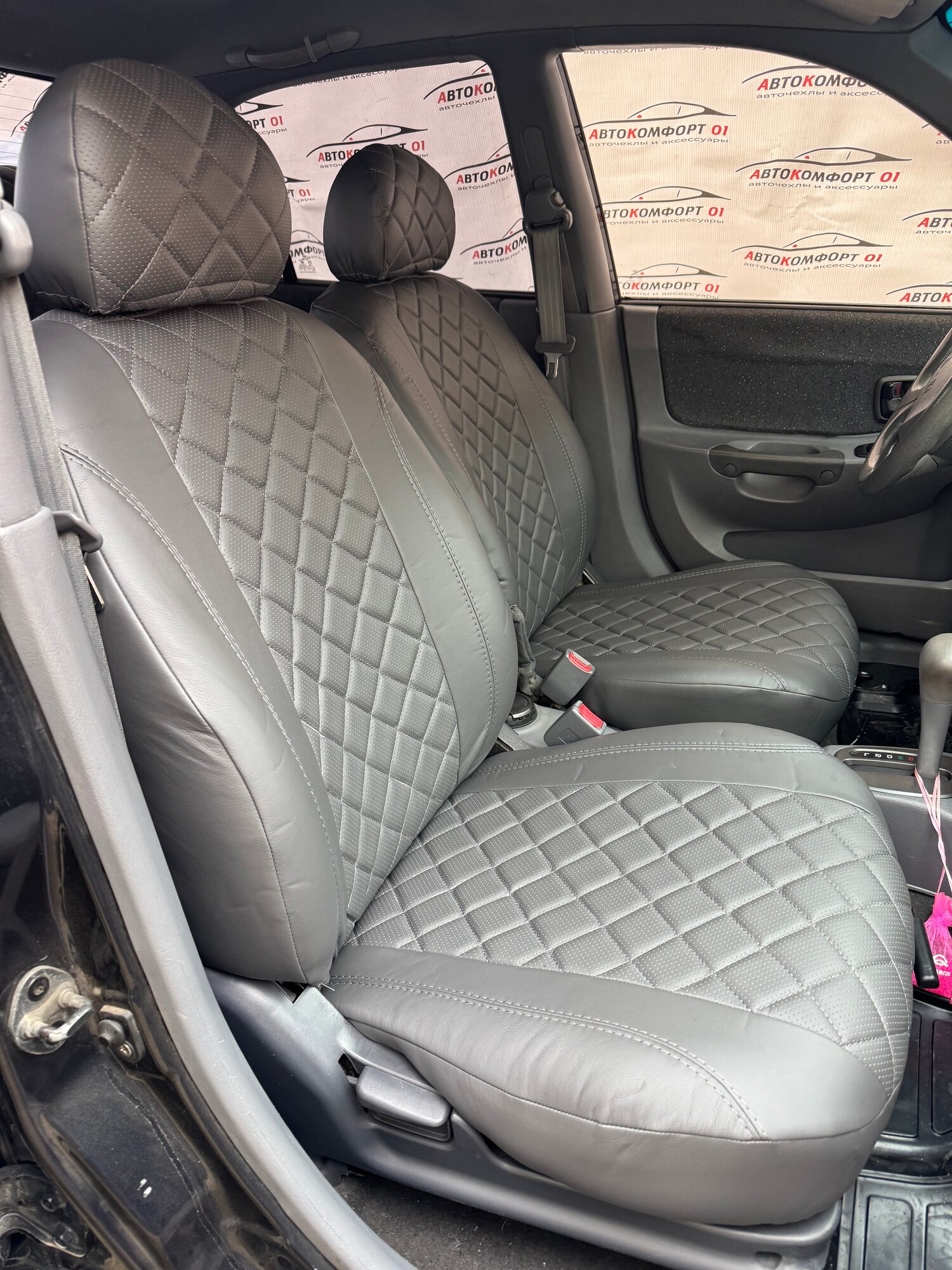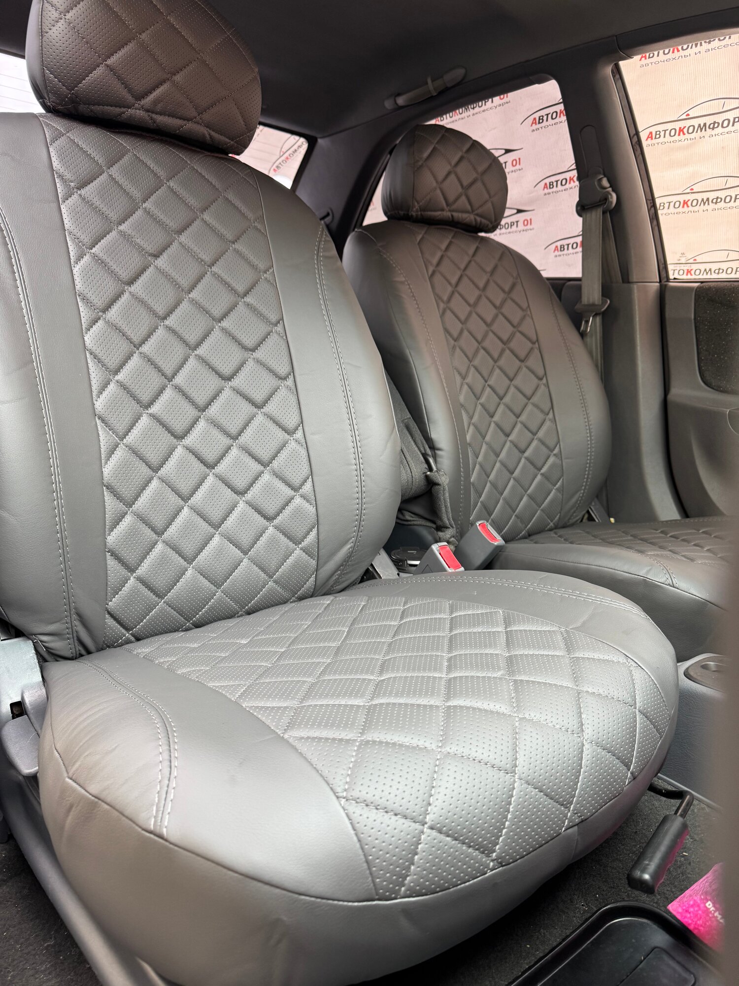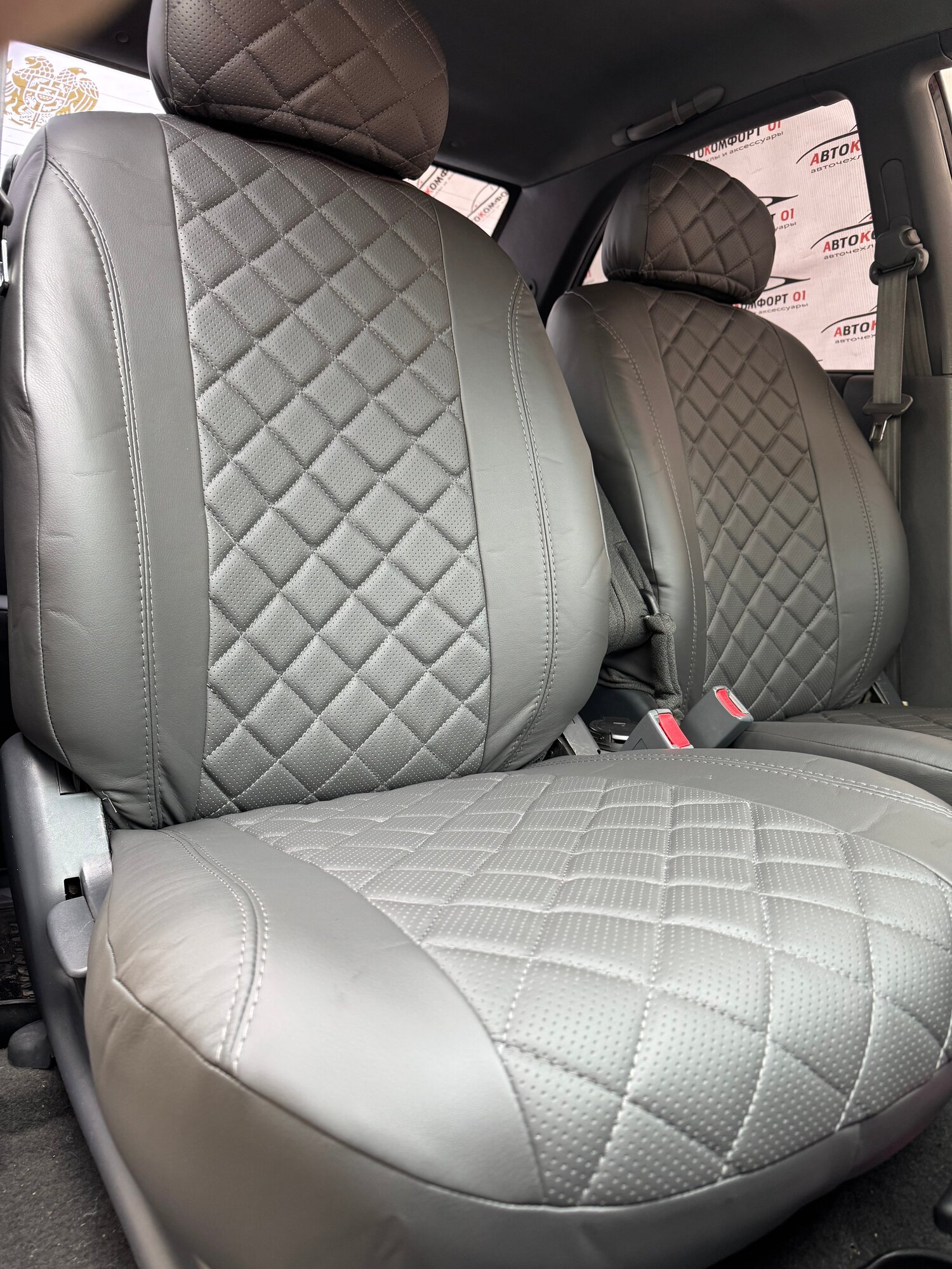 Купить Комплект чехлов для Hyundai Accent с 99-11г. Экокожа, ромб, серый, серый. с доставкой по всей России.