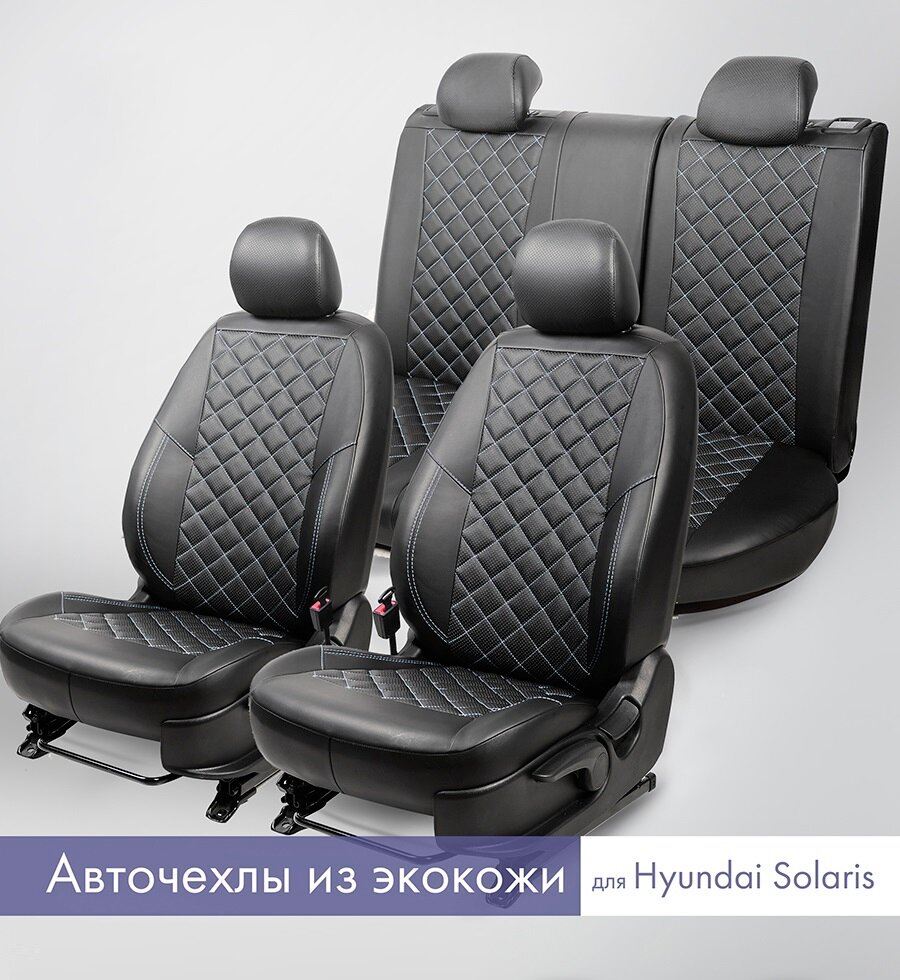 Комплект чехлов ELITE для Hyundai Solaris II Sd / Kia Rio IV (X-Line / X) (40/60) с 17г. Экокожа, ромб, черный, серый: сравнение цен, характеристики, фото, актуальное наличие и цены.