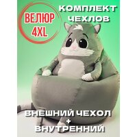 Купить Комплект чехлов для кресла-мешка Кот 4XL, Кресло-мешок без наполнителя из велюра / спанбонда, корзина для игрушек XXXXL с доставкой по всей России.