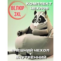 Комплект чехлов для кресло-мешка Енот 3XL, Кресло мешок без наполнителя из велюра и спанбонда, корзина игрушек XXXL: сравнение цен, характеристики, фото, актуальное наличие и цены.