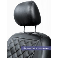 Комплект чехлов для LADA Granta, Datsun On Do (Задняя спинка и сидение сплошные). Экокожа, ромб, черный, бежевая строчка: сравнение цен, характеристики, фото, актуальное наличие и цены.