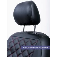 Комплект чехлов для LADA Granta, Datsun on-Do / (задние спинка и сидения сплошные). Экокожа ромб черный, красная строчка: сравнение цен, характеристики, фото, актуальное наличие и цены.