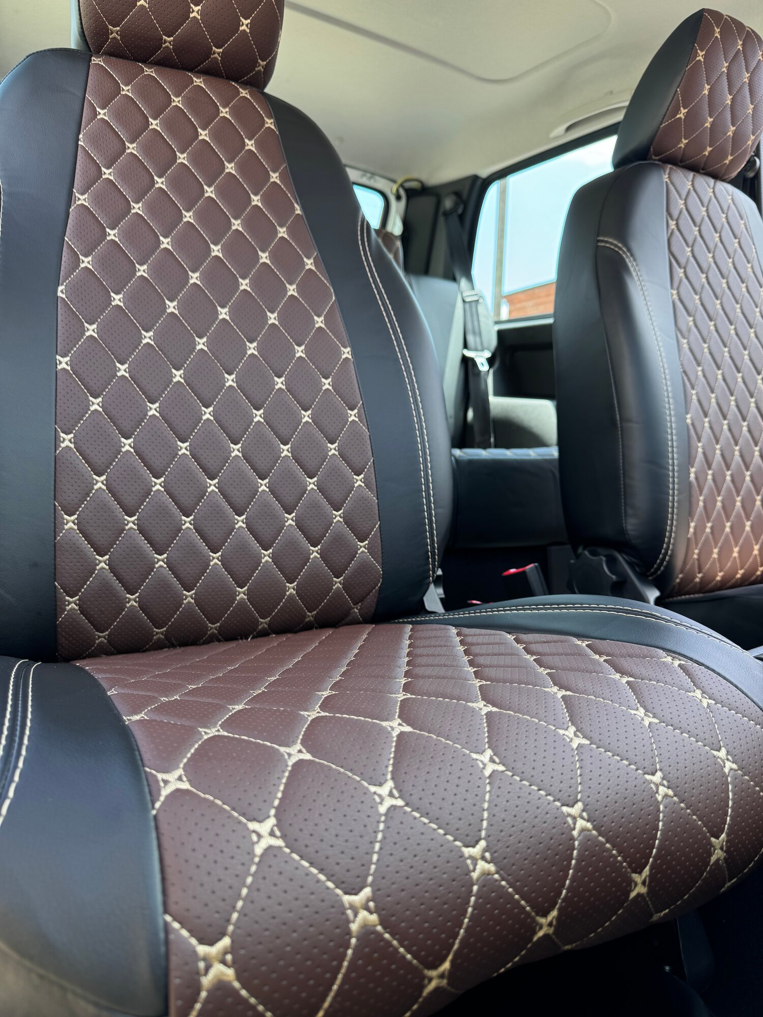 Купить Комплект чехлов ELITE для LADA Niva 3-х дверн. (Urban/Legend) с 20г. Экокожа, ромб, черный + коричневый, бежевая строчка с доставкой по всей России.