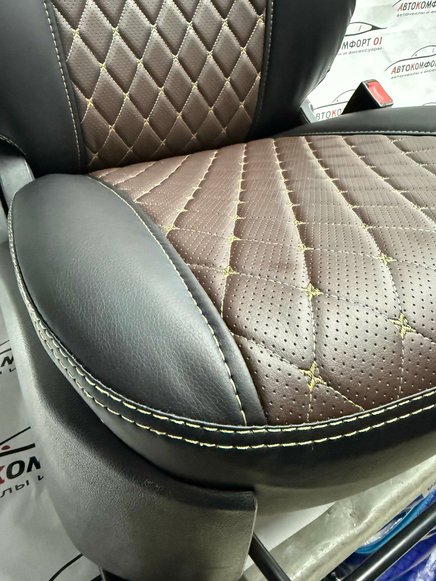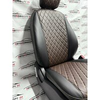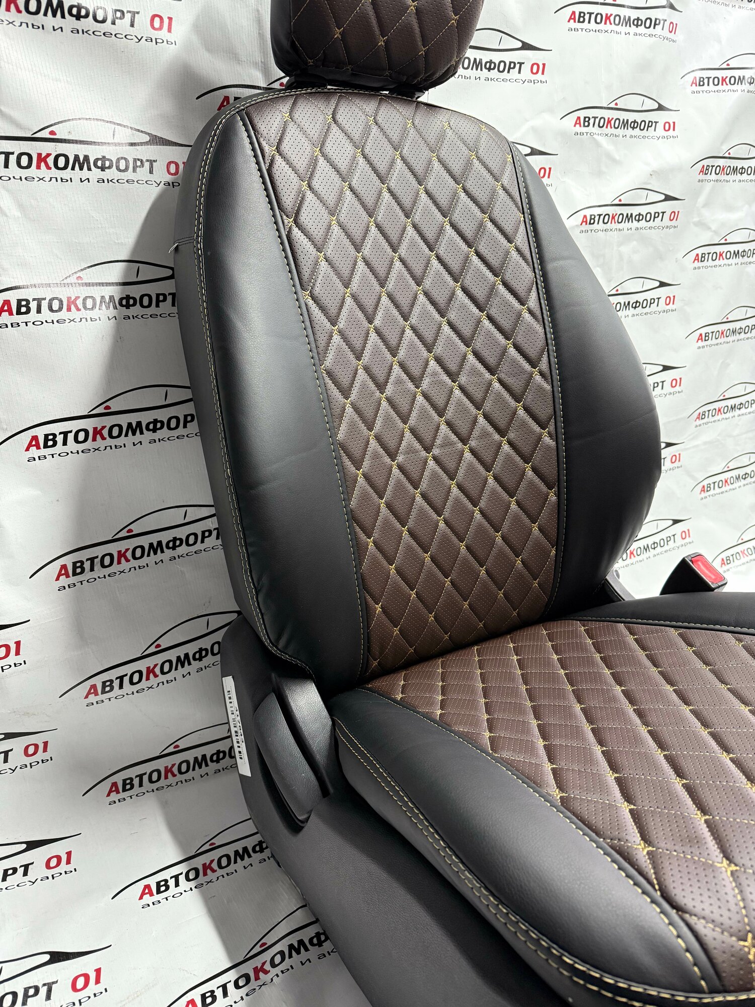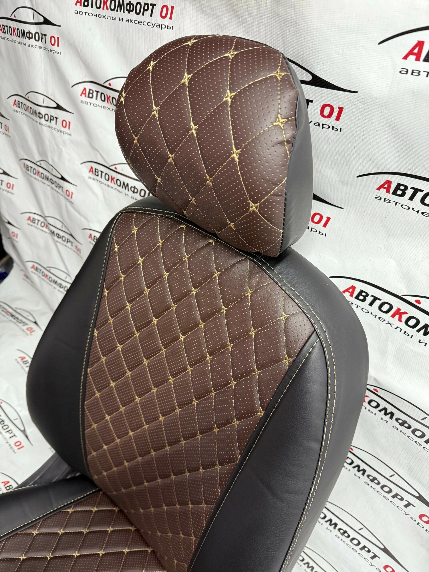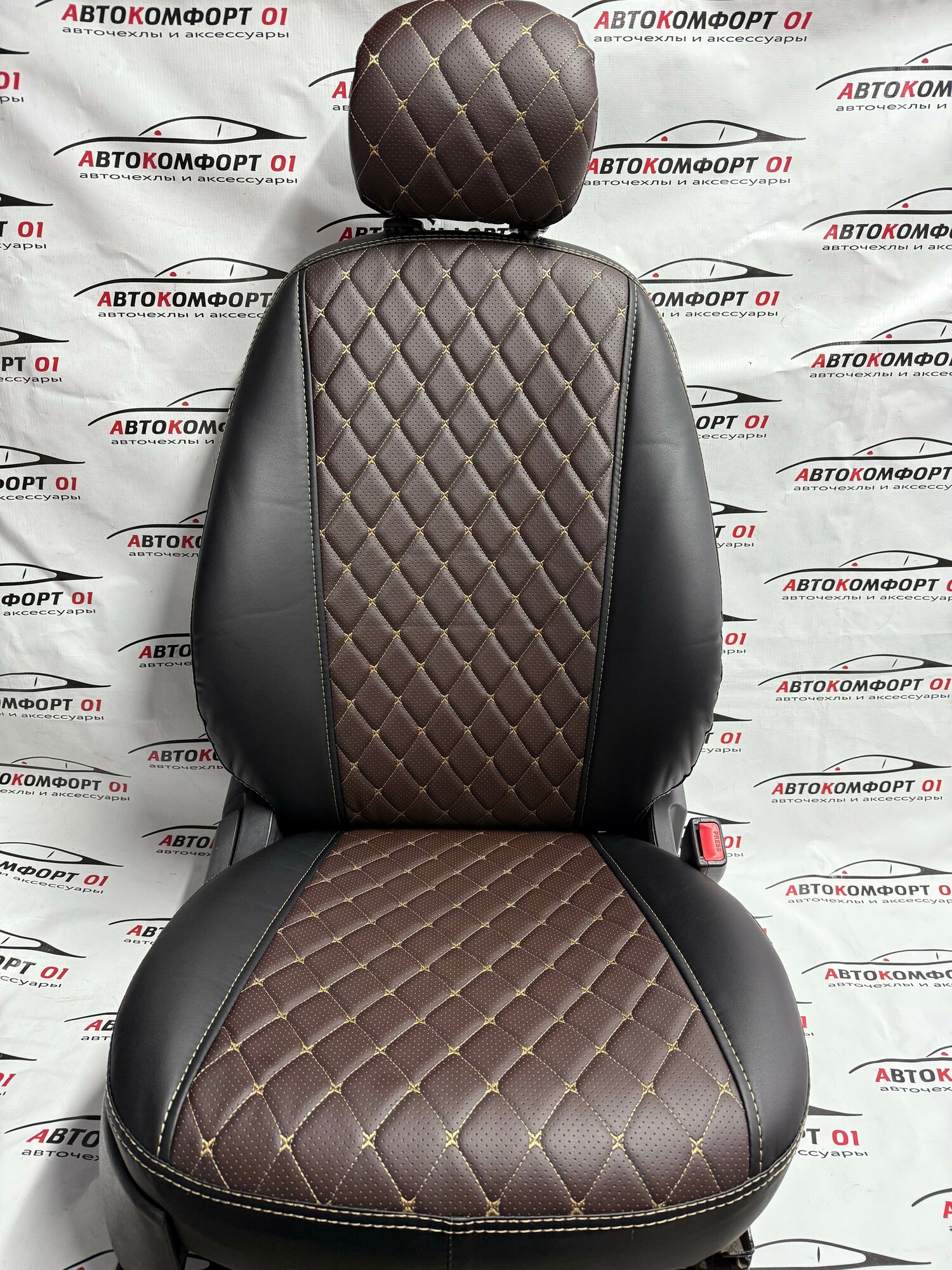 Комплект чехлов ELITE для LADA Granta / Datsun (задние спинка и сидения сплошные). Экокожа, ромб, черный, коричневый.: сравнение цен, характеристики, фото, актуальное наличие и цены.