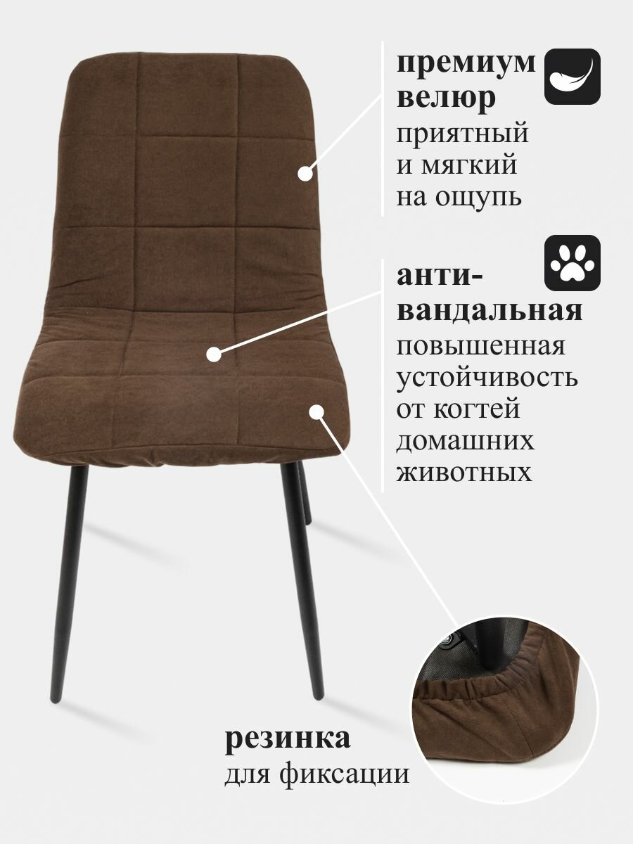 Комплект чехлов на стул Чили из велюра, коричневый, 4 шт: сравнение цен, характеристики, фото, актуальное наличие и цены.