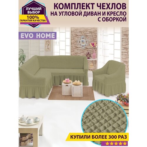 Комплект чехлов на угловой диван и одно кресло, с оборкой: сравнение цен, характеристики, фото, актуальное наличие и цены.