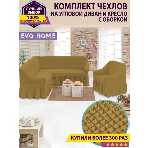 Комплект чехлов на угловой диван и одно кресло, с оборкой: сравнение цен, характеристики, фото, актуальное наличие и цены.