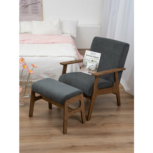 Кресло мягкое в гостиную ZASIDELIS модель Чили c пуфом для ног на балкон, для дома, для отдыха в спальню, для кухни, интерьерное лофт, кухонное дизайнерское, деревянное 1 шт.: сравнение цен, характеристики, фото, актуальное наличие и цены.