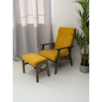 Кресло мягкое в гостиную ZASIDELIS модель Chill с пуфом для ног, на балкон, для дома, для отдыха в спальню, для кухни, интерьерное лофт, кухонное дизайнерское, деревянное 1 шт.
